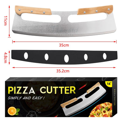 Pizza Cutter Rocker Stainless Steel with Double Wooden Handle 14 Inch Upgraded Sharp Pizza Slicer Knife Chopper with Blade Cover